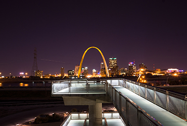The Metro East Park and Recreation District, with the invaluable support and backing of the Gateway Center of Metropolitan St. Louis, developed and opened the Mississippi River Overlook in the Spring of 2009. The Overlook is located off the eastern bank of the Mississippi River, parallel to the Gateway Arch, and stands at just over 43 feet tall, offering parkgoers a truly breathtaking and unrivaled view of the Jefferson National Expansion Memorial and St. Louis City skyline.